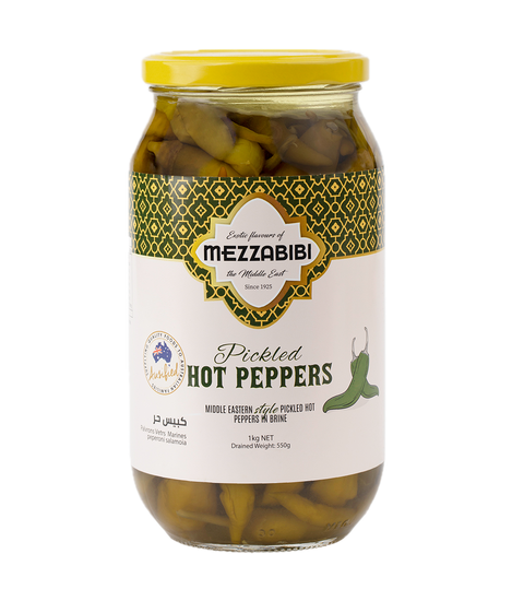 Mezzabibi Pickled Hot Peppers bring a spicy kick with a tangy twist to any meal. Perfect for adding heat to sandwiches, salads, or snacks, these peppers offer a lively burst of flavor that wakes up your taste buds. Their crisp texture and balanced acidity make them a great way to spice up your cooking or enjoy straight from the jar. Ideal for those who love a bit of fire in their food.