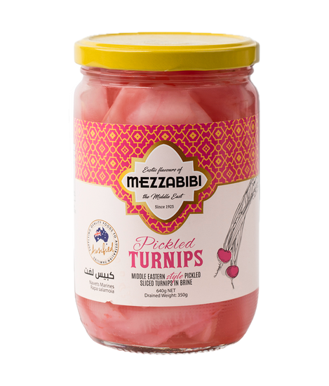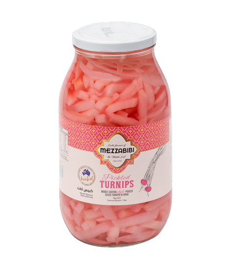 Mezzabibi Pickled Turnips offer a crisp, tangy bite crafted through traditional pickling methods. Ideal for enhancing Middle Eastern dishes or adding a vibrant crunch to sandwiches and salads, these pickled turnips bring a balance of acidity and subtle earthiness. Their naturally fermented process preserves nutrients while ensuring a bold, authentic flavour profile for culinary enthusiasts seeking quality and depth in every bite.