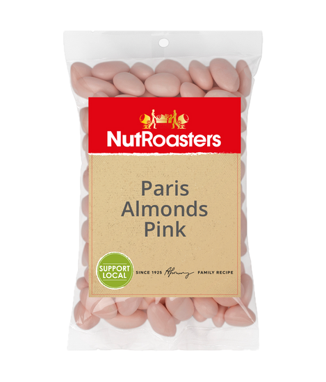 Paris Almonds are a delightful bonbonniere treat featuring crunchy almonds wrapped in a smooth, sweet pink candy shell. Perfect for gifting or enjoying as a colourful, tasty snack, they bring a classic touch of sweetness to any occasion.