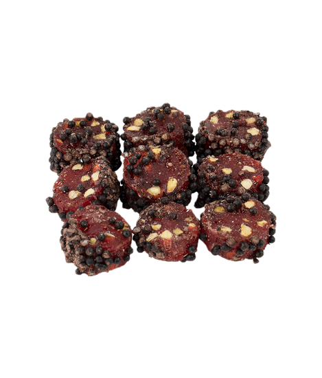 Enjoy a delightful mix of fruity and chocolaty flavors with Turkish Delight - Pomegranate With Chocolate Balls. This treat combines the tangy sweetness of pomegranate flavoured jelly with rich chocolate balls for a chewy, flavourful snack that's perfect anytime you want something special. Seriously impressive!